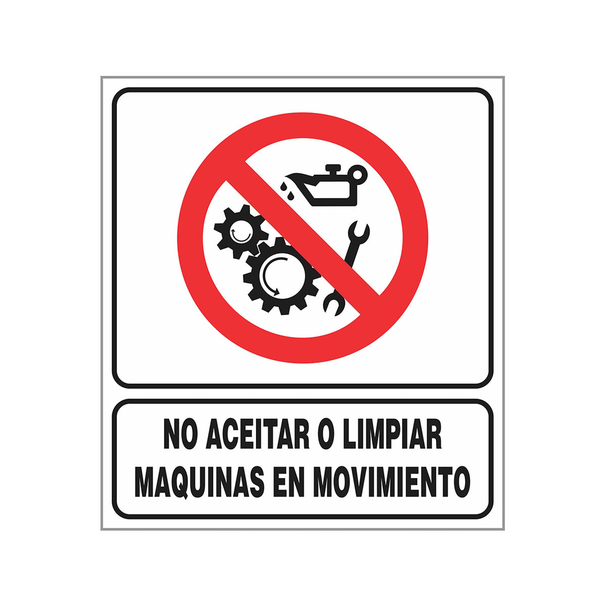 Leyenda: No Aceitar o Limpiar Maquinas en Movimiento