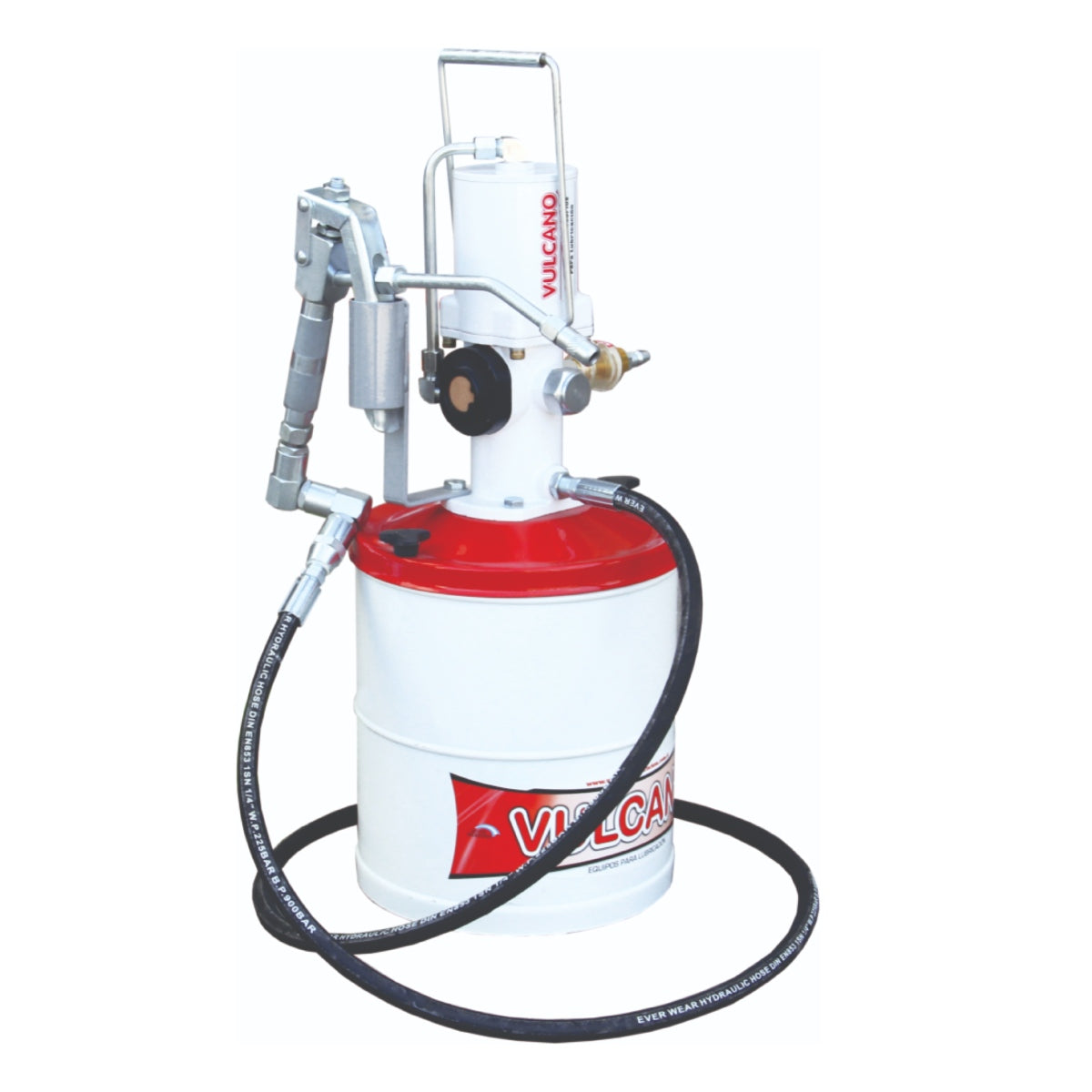 Engrasador portátil de 6 Kgs con cabezal neumático con sistema de rótula autoalineante y pistón sin sellos, libre de desgaste y mantenimiento. Equipado con Filtro de Entrada, Manguera de alta presión de 2 metros, Pistola de engrase neumática, Conexión giratoria tipo "Z" y Prensa grasa que evita la formación de vacío.