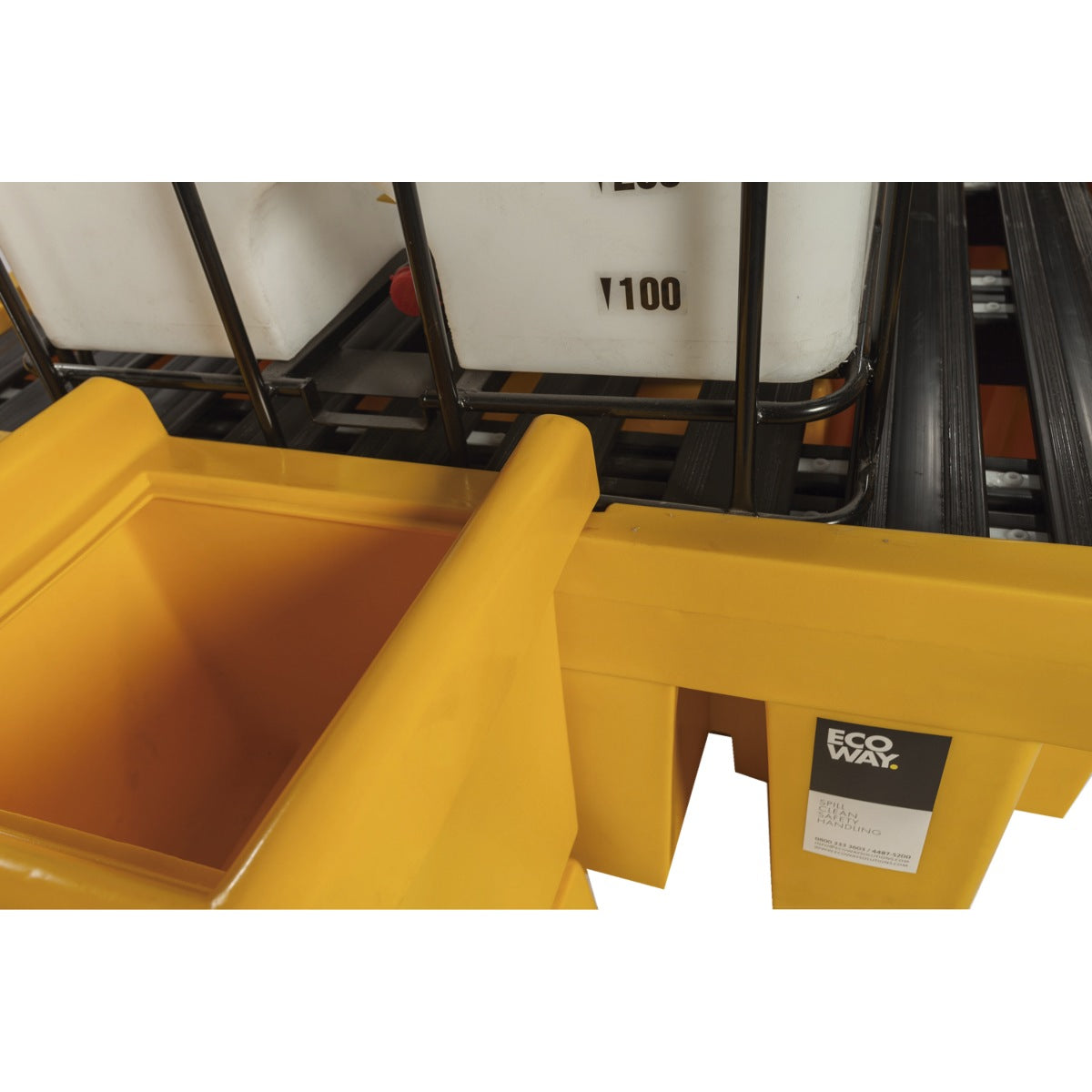 Esta batea antiderrame está diseñada para cumplir con las normas para el almacenamiento de 1 tanque IBC de 1000 lts. Cuenta con una rejilla extraíble anti chispa, que facilita su vaciado y/o limpieza. La contención no cuenta con válvula ni canilla de descarga, ya que estas pueden quedar abiertas y/o fallar. Esto asegura la estanqueidad total, lo cual la hace cumplir con las normas internacionales. El diseño hace que el liquido derramado sea redireccionado hacia a la batea contenedora. La batea es fabricada en PEMD por rotomoldeo y la rejilla de polipropileno extruido con alta resistencia a corrosivos. Diseñada con un sistema de nervios, apoyos y refuerzos que aumentan la capacidad de carga y reduce al mínimo la posibilidad de fractura. Cuenta con entradas para uñas de autoelevador para facilitar su manipuleo. Incluye una batea de contención para cubrir la válvula dosificadora a fraccionar el contenido a bidones o baldes.