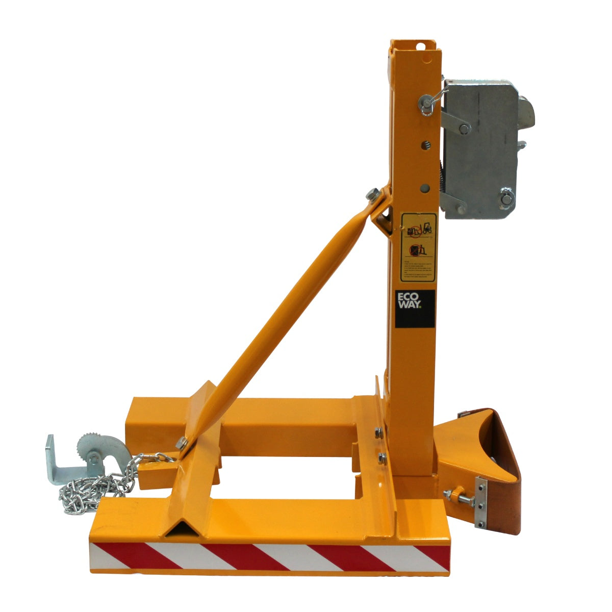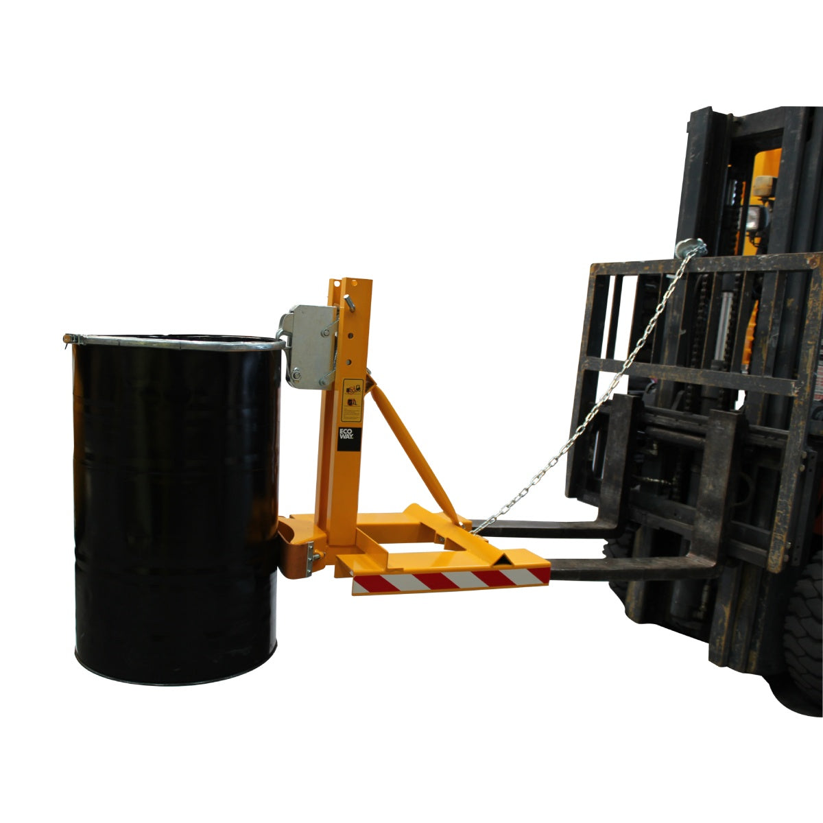 Pinza automática para 1 tambor metálico de 200 Lts. Aplicable a las uñas de cualquier auto elevador, sujeta el tambor por el labio superior en forma segura. No requiere instalación hidráulica. Indicada para operación de tambores vacíos y llenos. Suspende el tambor por el anillo superior con un apoyo en la parte inferior del tambor.