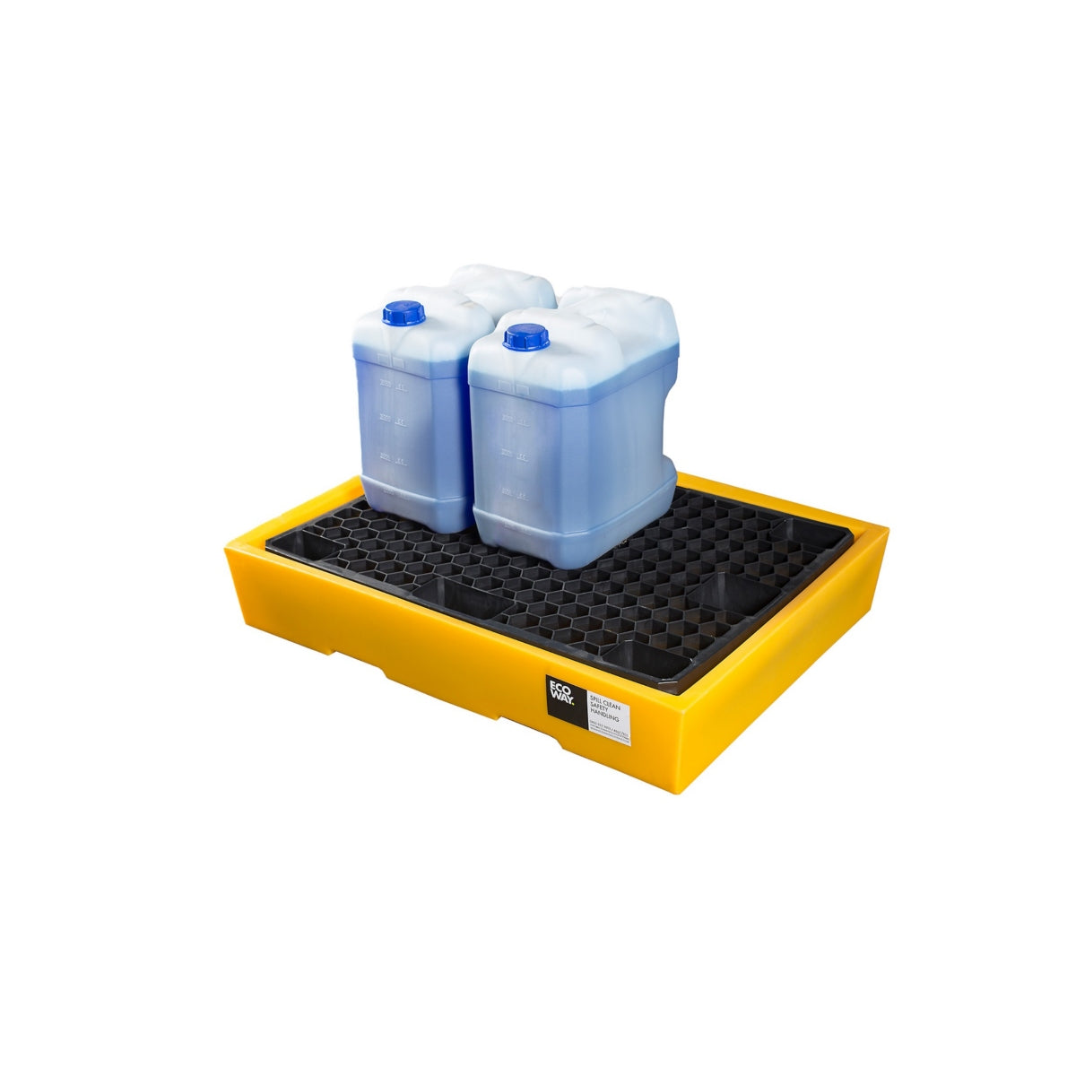 Esta batea de contención de bajo perfil está hecha especialmente para contener derrames menores, por ejemplo, de bidones, baterias, y tambores. Cumple con la norma de 110% de contención para bidones, y puede almacenar hasta 12 de 20 litros. También calza un tambor de 200 lts, y en ese caso provee una contención parcial. Dado que es una contención parcial, se recomienda que se use el PTI2001 únicamente para trabajar con el tambor, no para almacenarlo.