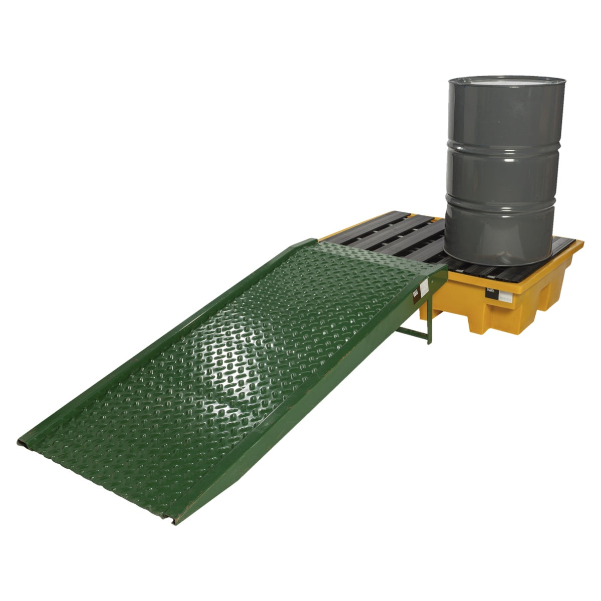Las rampas son accesorios para los pallets y pisos antiderrame, para facilitar su carga con un carro porta tambor. Estan construidas en acero, con un superficie antideslizante.
