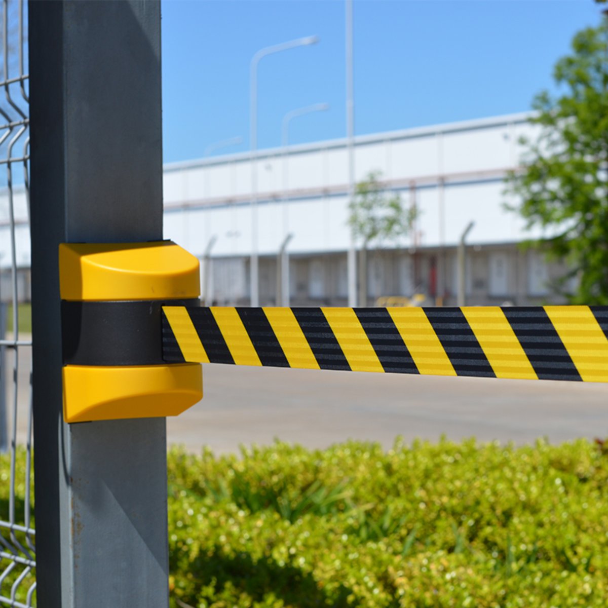 La cinta retráctil es ideal para delimitar zonas especificas y para el bloqueo y el desbloqueo rápido de áreas restringidas, pasillos y escaleras. El compartimiento está fabricado en plástico resistente. Es una solución ideal para pasillos estrechos donde se requiera un control de acceso temporal. Es de uso fácil y rápido. Viene con el receptor para anclar el final de la cinta cuando esta se extiende. Incluye 8 tornillos y 8 tarugos para fijarlo a una pared.